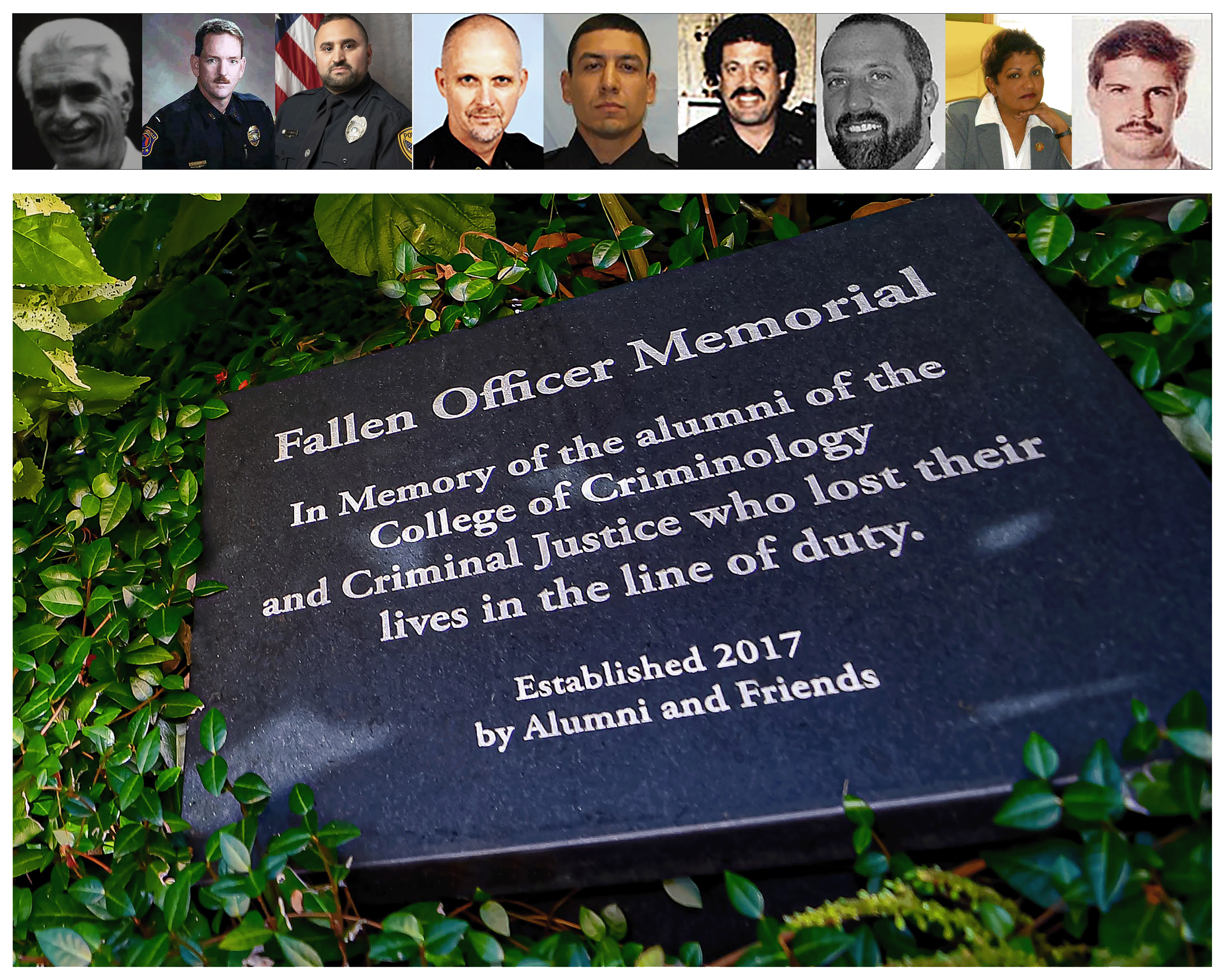 These brave men and women are all alumni of the College of Criminology and Criminal Justice. They leave behind a legacy that represents the hallmarks of the College: character, vision, and intellect. It takes a special person to respond to the call to become a law enforcement officer. Their sacrifices serve as a reminder to all of us as we resolve to better understand and prevent these tragedies. Click on the names below to learn more about the College's alumni featured on the Fallen Officer Memorial.